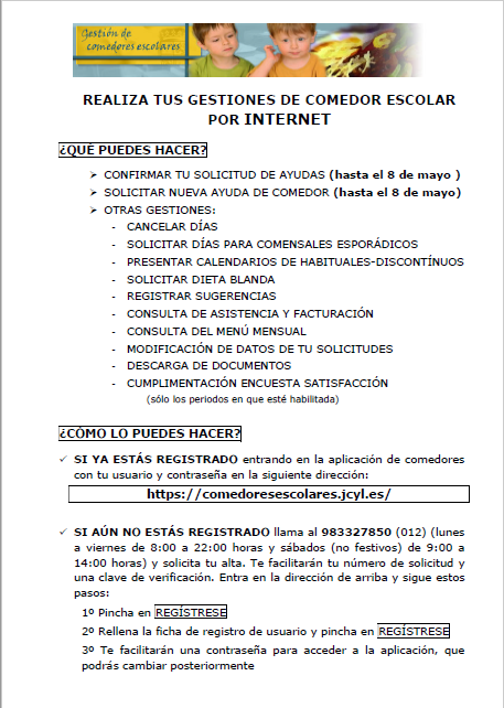 SOLICITUD DE AYUDA DE COMEDOR ESCOLAR PARA ALUMNADO YA MATRICULADO EN EL CENTRO EDUCATIVO.